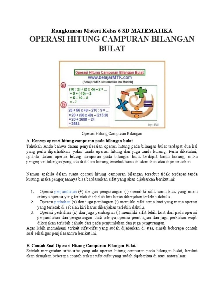 Selesaikan soal operasi hitung bilangan cacah dan pecahan . Operasi hitung campuran bilangan bulat. Simak rangkuman operasi hitung campuran pada bilangan bulat dan contoh soal serta cara menjawabnya berikut ini! Bilangan bulat 1 dibaca sebagai positif satu. Rumus matematika bangun ruang lengkap juli 17 juni 36 mei 2 april 5.