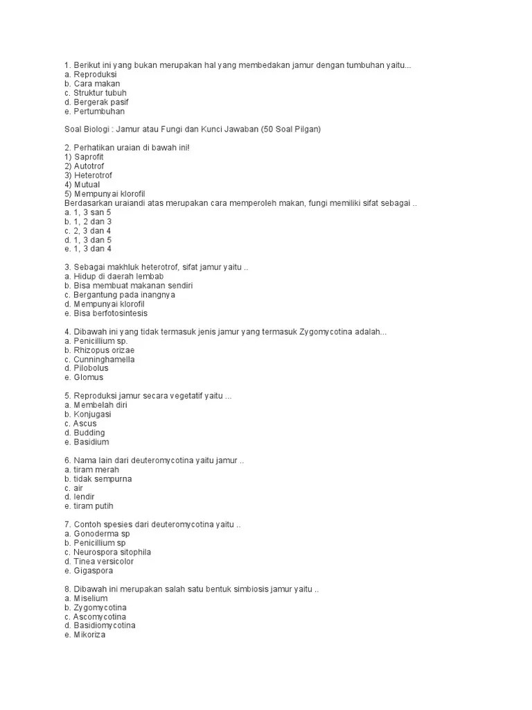 Khusus untuk jawaban soal latihan dan tes penilaian akhir, perhatikan umpan balik di setiap akhir kegiatan dalam modul ini. Pilihlah jawaban pertanyaan ini dengan tepat dan benar ! Jamur tidak dapat digolongkan ke dalam dunia tumbuhan karena. Apabila hasil soal evaluasi mencapai . Soal dan kunci jawaban materi jamur / fungi ( biologi ) 1.